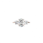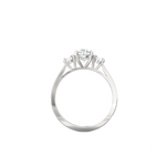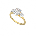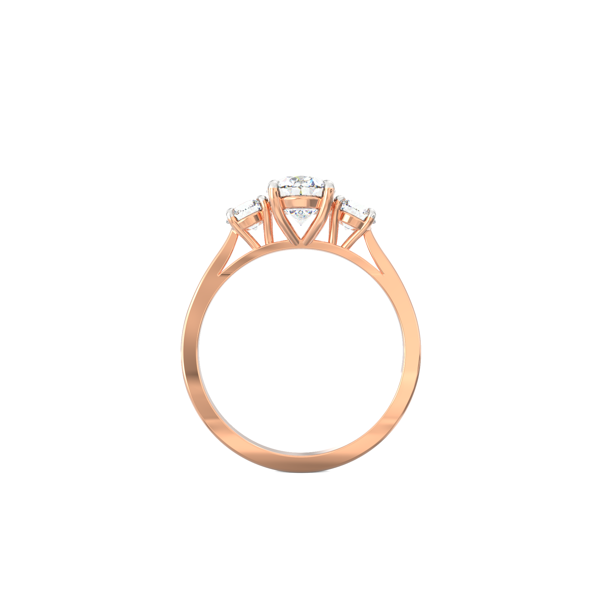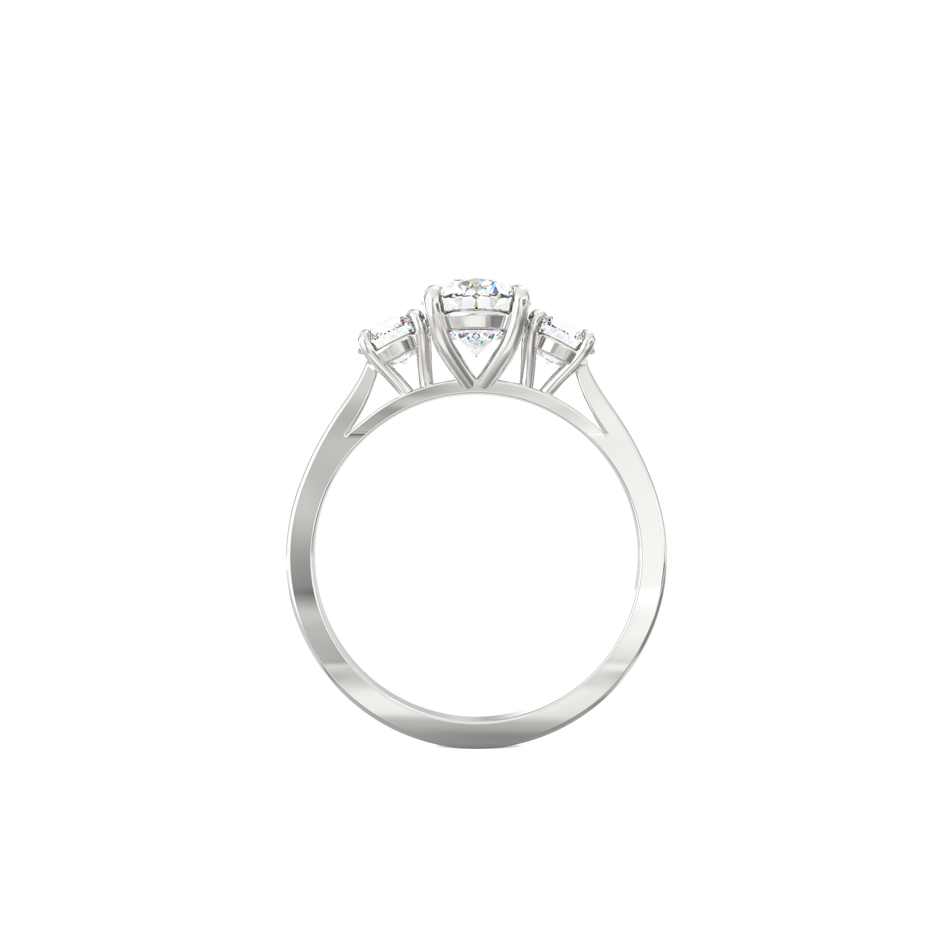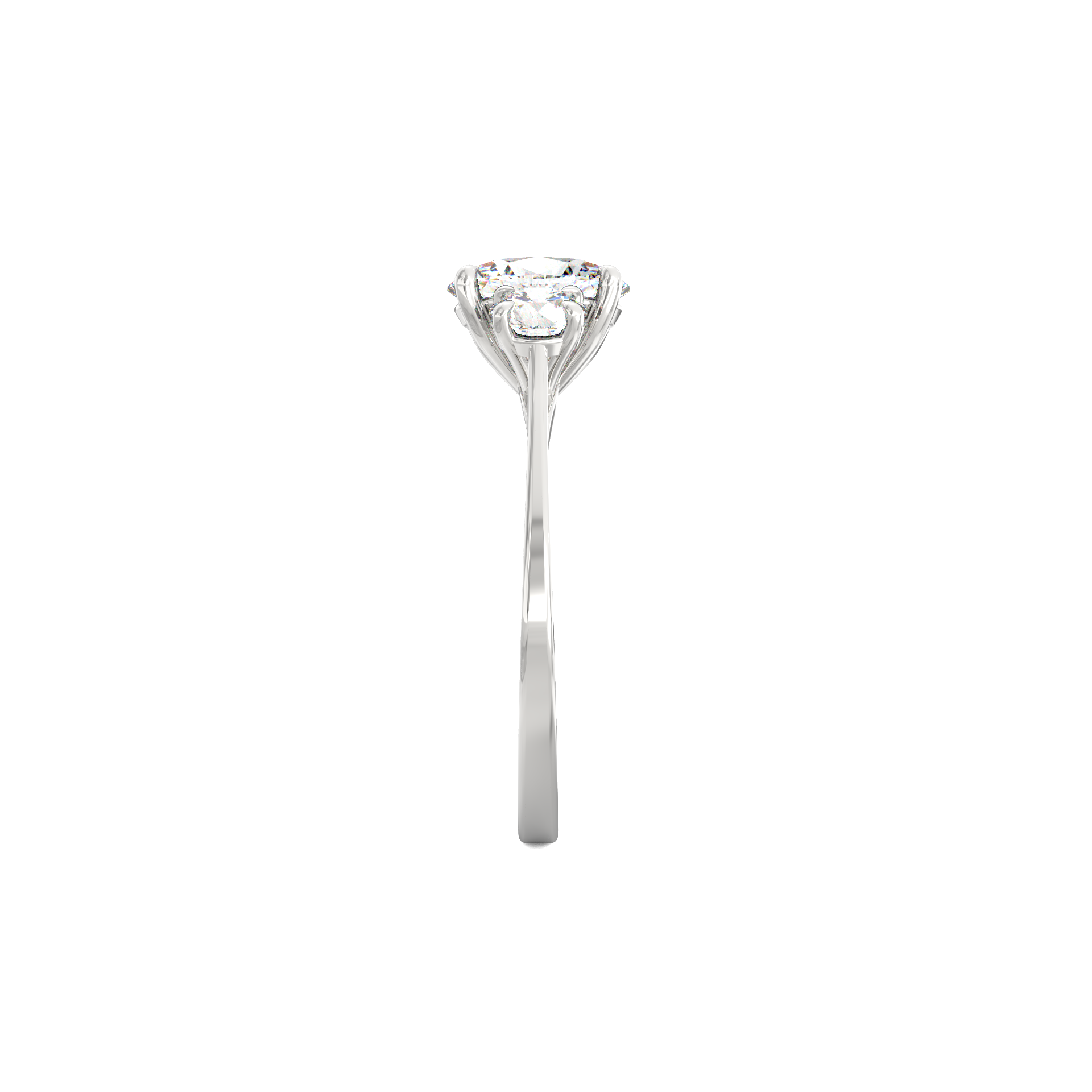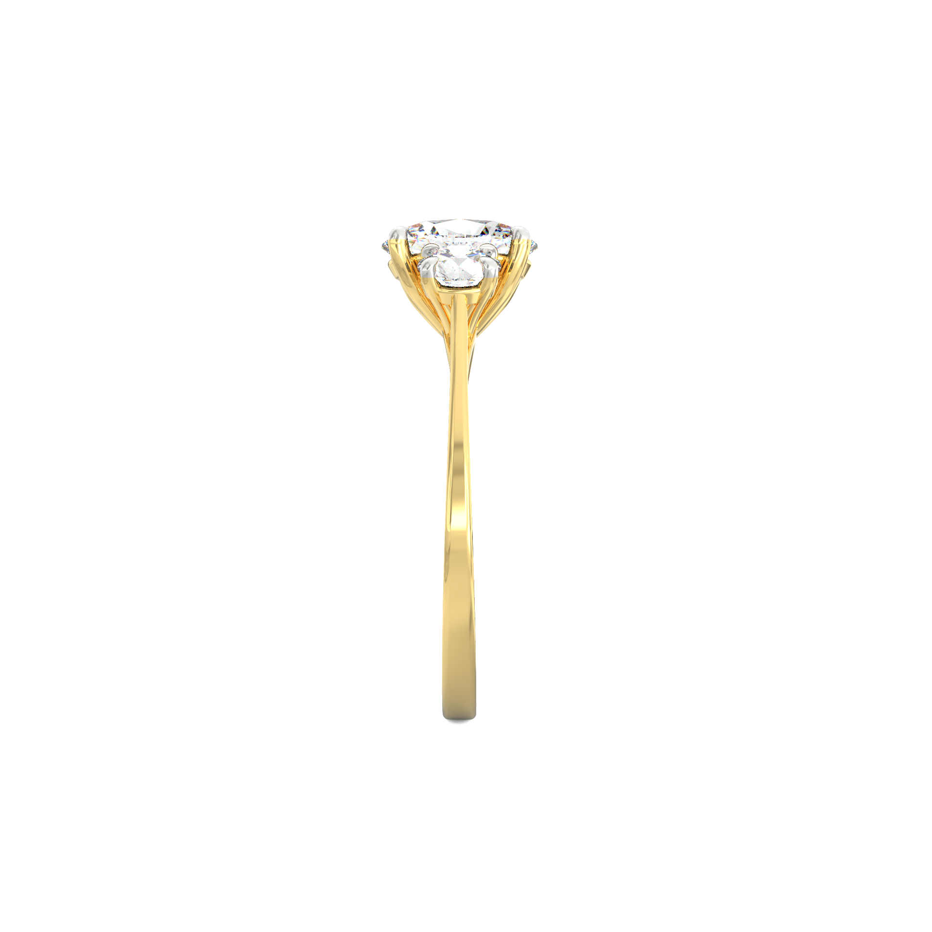 The Seraphina oval three stone diamond ring brings together light, emotion, and meaning in a beautifully balanced form. At its center rests a 1.25 Ct oval-cut lab-grown diamond that glows with a soft, elongated brilliance. On each side, two round lab-grown diamonds totaling 1.08 Ct complete the trio, creating a smooth flow of sparkle that symbolizes the past, present, and future. Because of this graceful structure, the design feels complete and deeply personal.