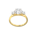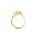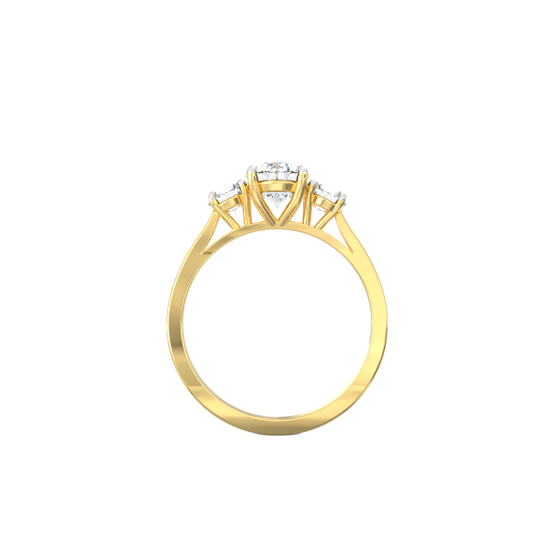 Crafted in BIS Hallmarked Gold, the ring features VS2+ clarity and G+ color diamonds that enhance its clarity and shine. The oval center stone adds length to the finger, while the round side stones offer symmetry and gentle contrast. As a result, the design feels refined yet expressive, making it suitable for engagements, milestone moments, or meaningful celebrations. This three-stone arrangement also adds depth to the piece, giving it a timeless appeal that suits every style.