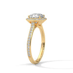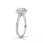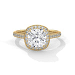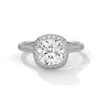 Bold yet graceful, the Verona Ring showcases a breathtaking 2.00 carat cushion-cut solitaire — a rare mix of softness and geometry. Its vintage-style halo of round-cut lab-grown diamonds adds just the right amount of brilliance, while a delicate pavé band lends extra sparkle with every move.