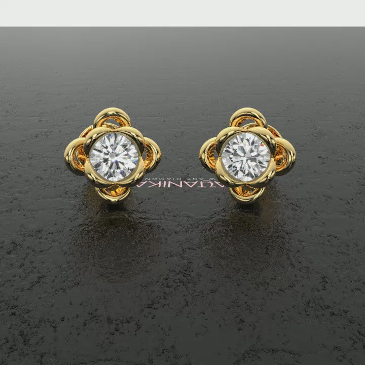Delicate yet eye-catching, these lab grown diamond stud earrings bloom with floral elegance. Each earring holds a radiant 0.25 Ct round-cut diamond, adding up to a total of 0.50 Ct. Inspired by nature, the design features soft gold wirework that adds charm while keeping the focus on the diamonds.